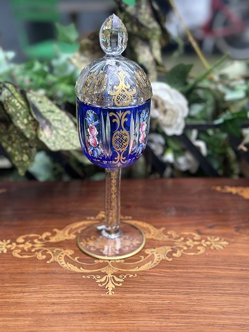 Bohemia crystal goblets with lids made of overflow glass, hand-cut lead crystal, enamel and gold, from the Rococo period Height 18 cm