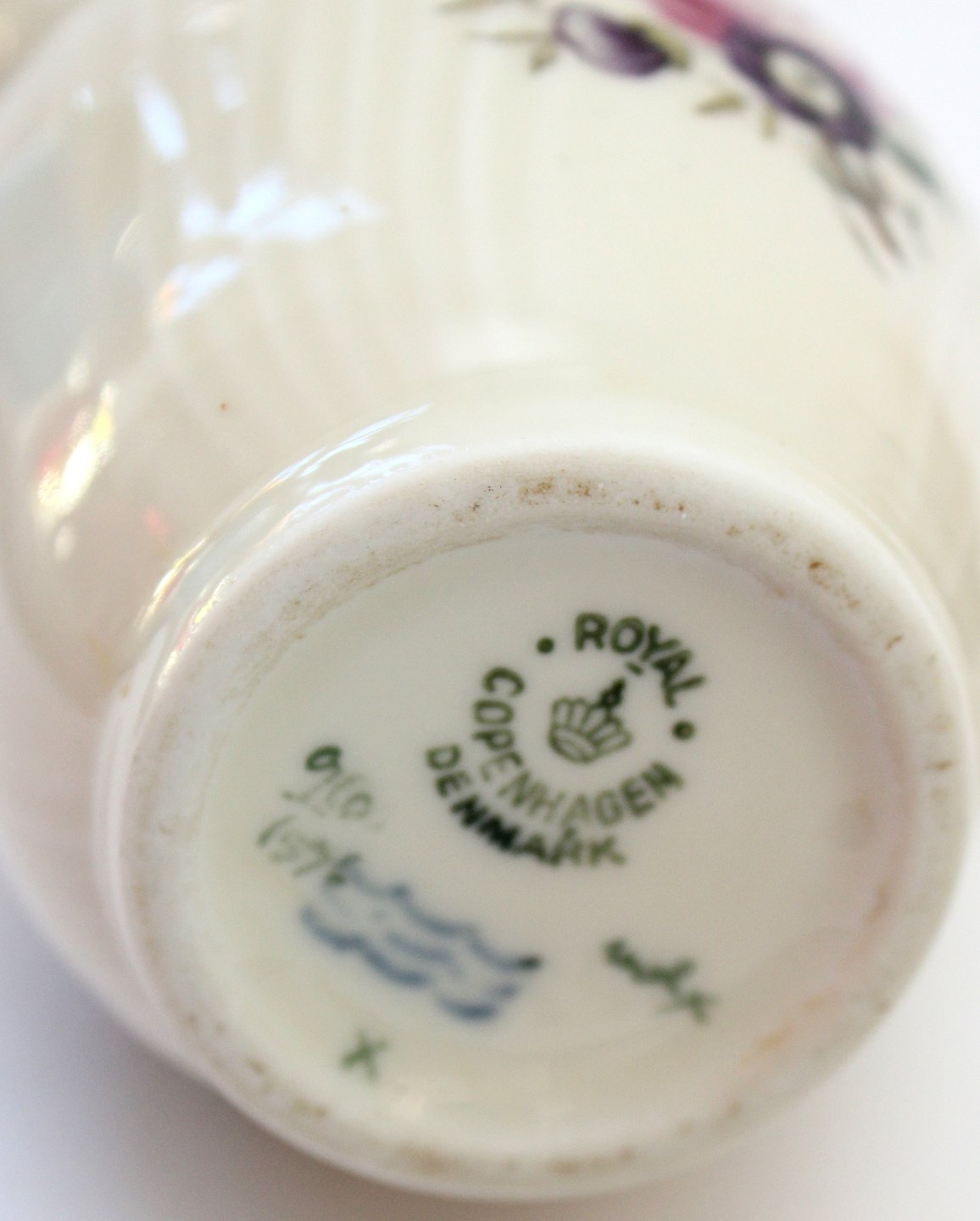 Royal Copenhagen, Frisenborg svejfet stel creme med forskellige blomstermotiver og guldkant. Flødekande. Nr. 910/1536. Højde 11,5 cm. Længde 11 cm. I sortering. Pris: 150 kr. stk. Lager: 1