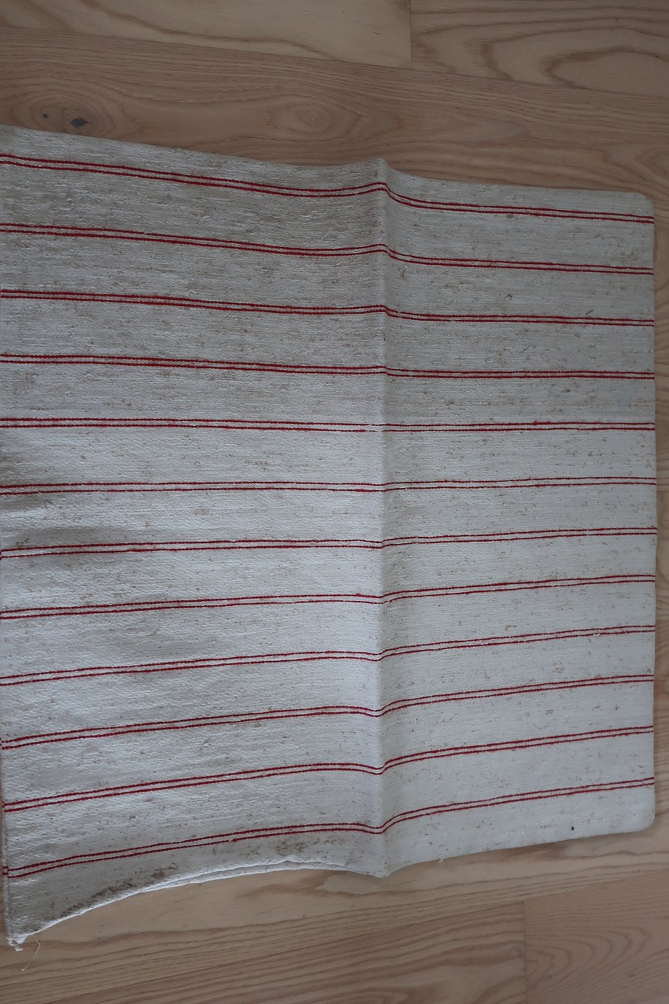 This antique, Danish fustian is in the old hand-woven/home-woven quality from the years when that was the way to do it, and it is NOT industrial produced.