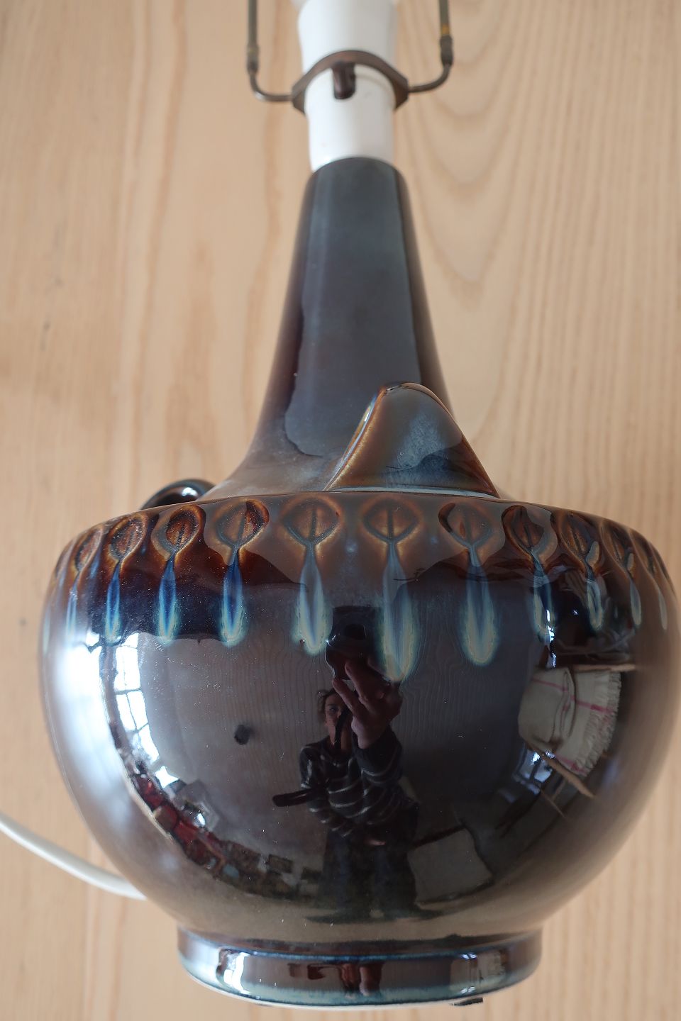 Beautiful tabel lamp made of stoneware Søholm stoneware, Bornholm, Denmark H: 29cm without socket Stamp 1059 In a good condition Articleno.: KL1005