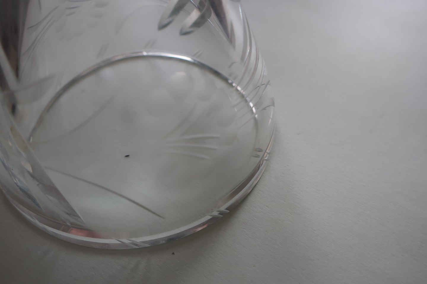 An old vase made of crystal glass With beautiful decorations in the glass H: 10,5cm W: 8cm In a very good condition Articleno.: KM1006