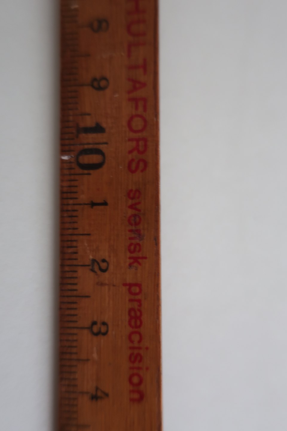 Lille lineal med reklameteksten "Original Hultafors Svensk præcision" samt logo