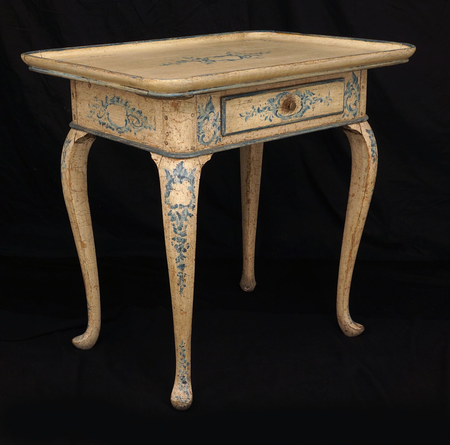 An original decorated Rococo table with blue decorations