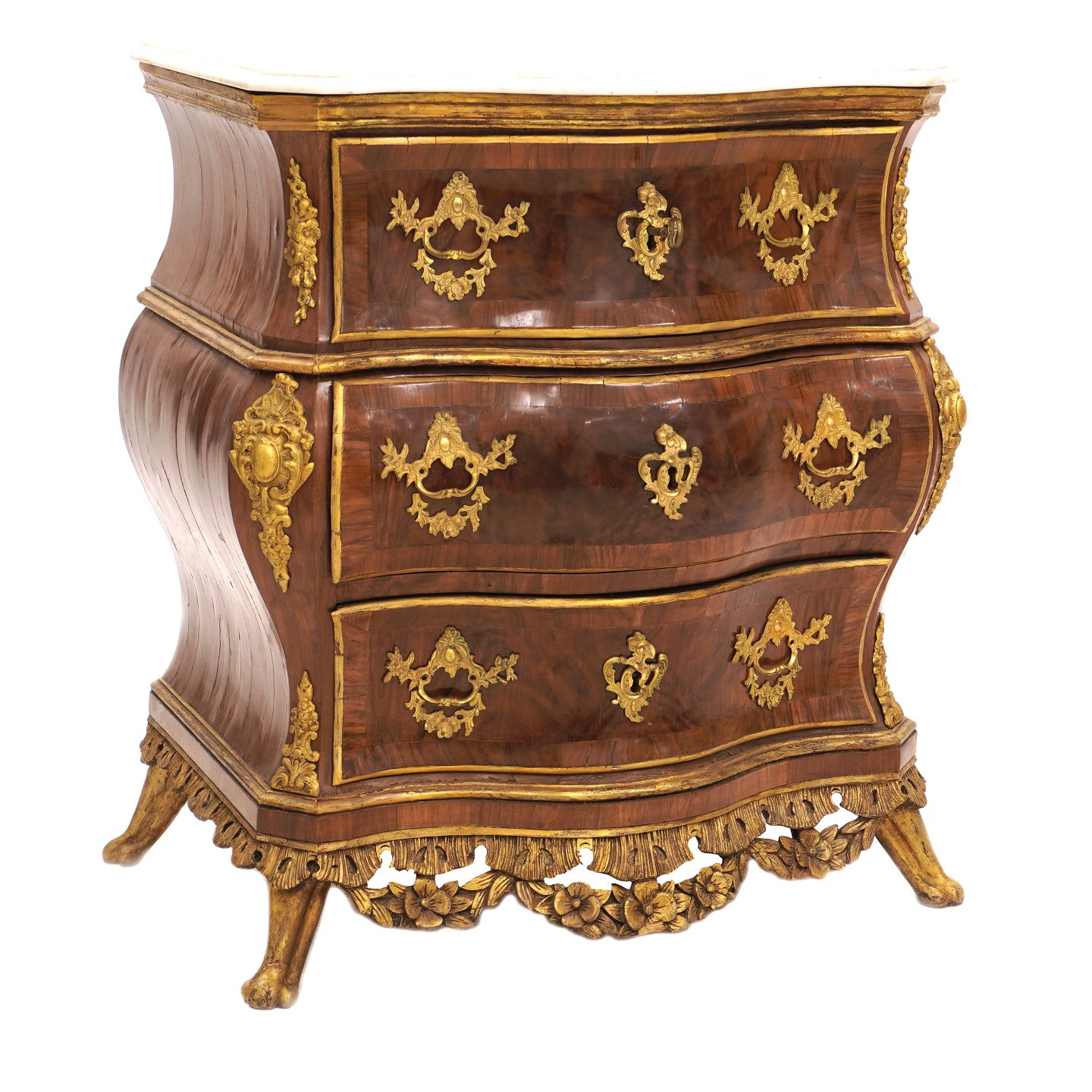 Mid 18th century Danish marble top walnut commode attributed to Mathias Ortmann, Copenhagen, circa 1750