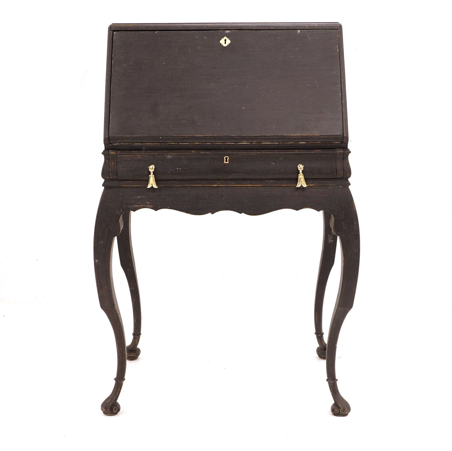 Black painted bureau with cabriole legs. In rokoko form, around 1860 H: 106cm. W: 69cm. D: 72cm Item number: 8389