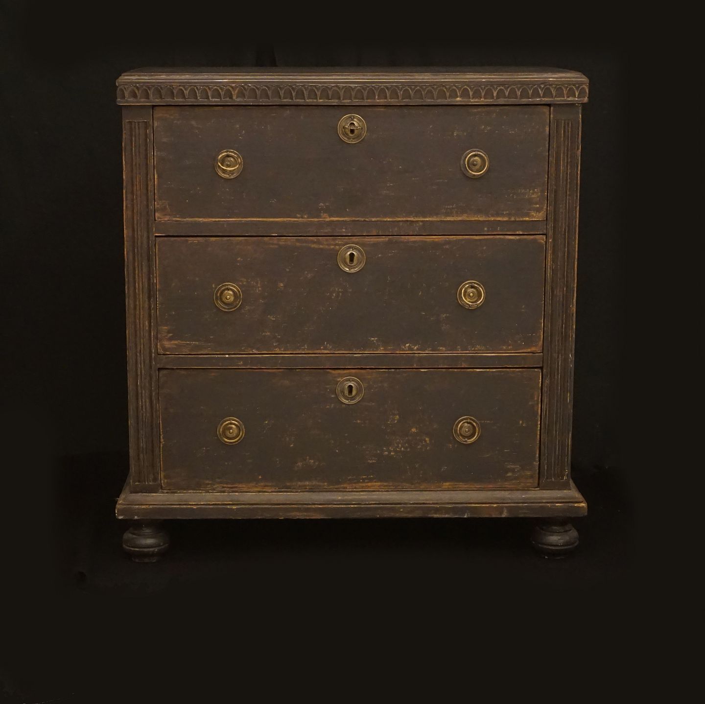 Black painted chest of drawers. Gustavian style Sweden circa 1880 H: 87cm. Top: 79x44cm Item number: 27307 B
