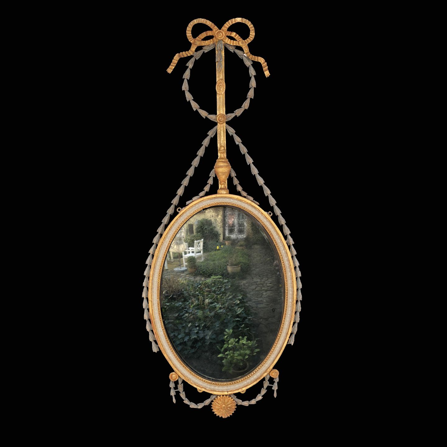 An oval partly gilt Louis XVI mirror Denmark circa 1790 H: 116cm. W: 47cm Item number: 25916