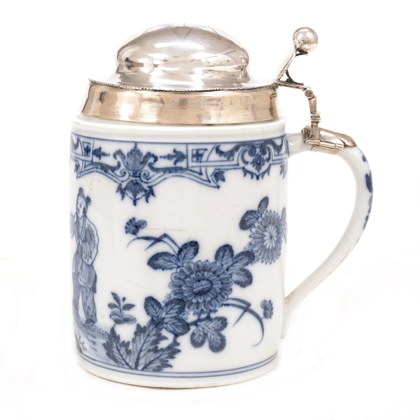 Blaudekorierter Meissen Deckelkrug mit Silberdeckel