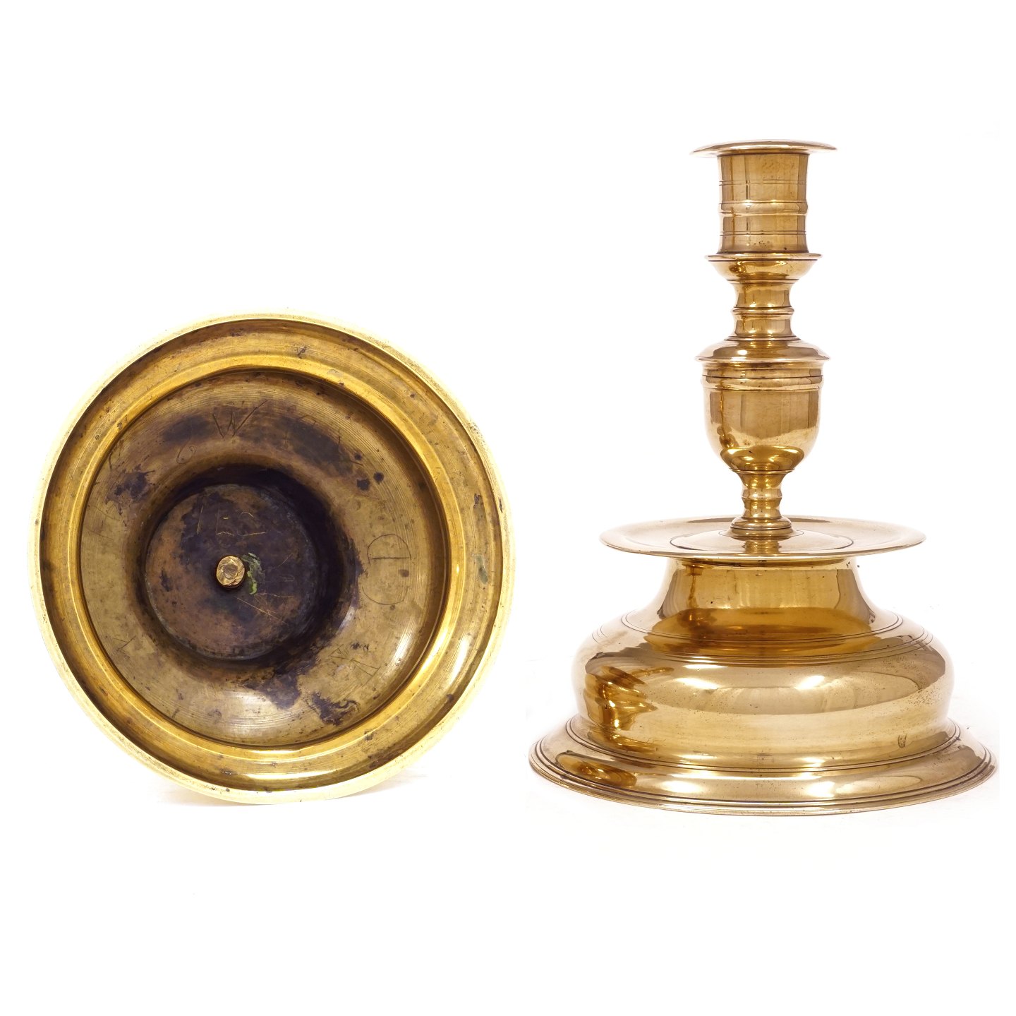 Ein Paar grosse Barock Glockenleuchter aus Messing. Dänemark um 1750. H: 21cm. D Fuss: 16cm