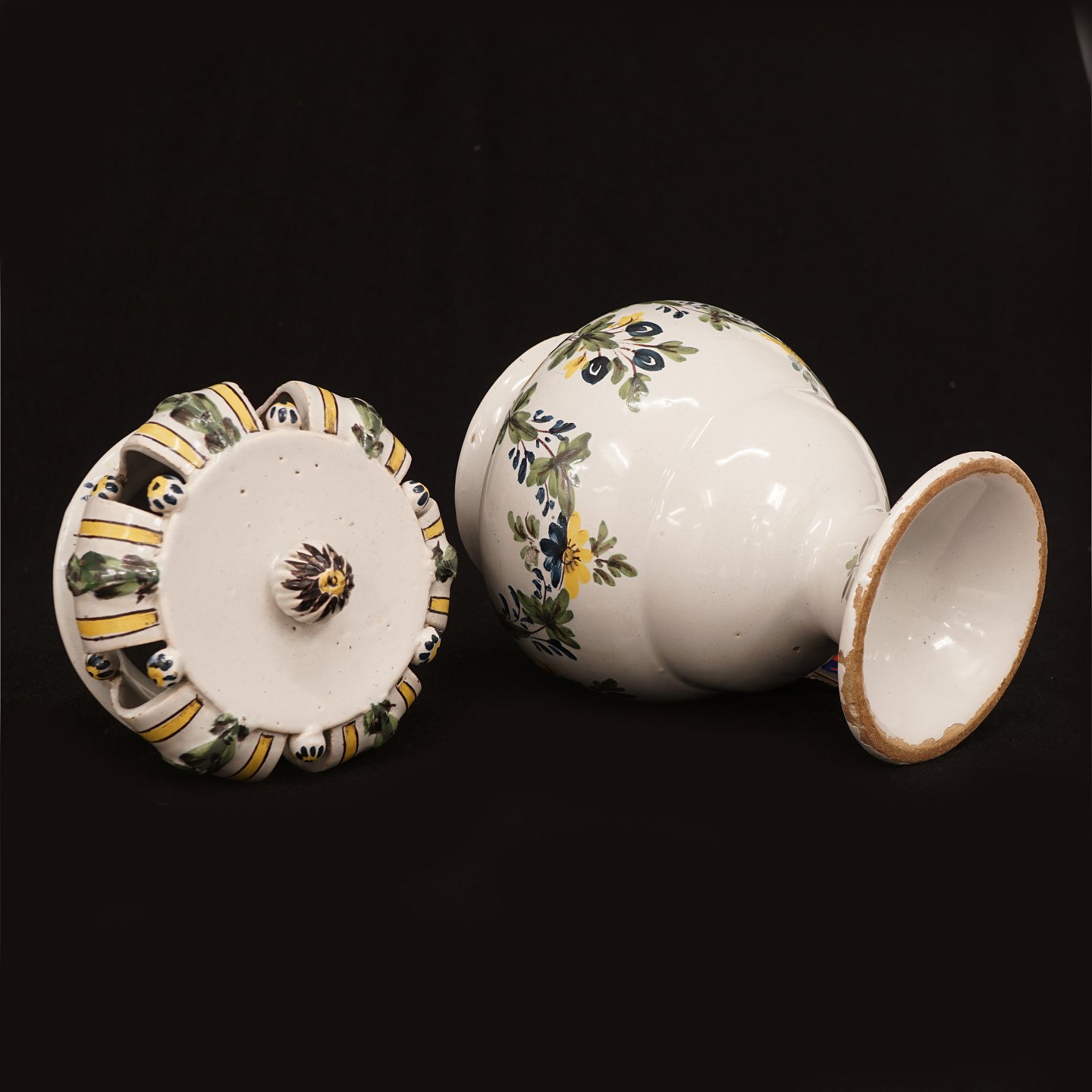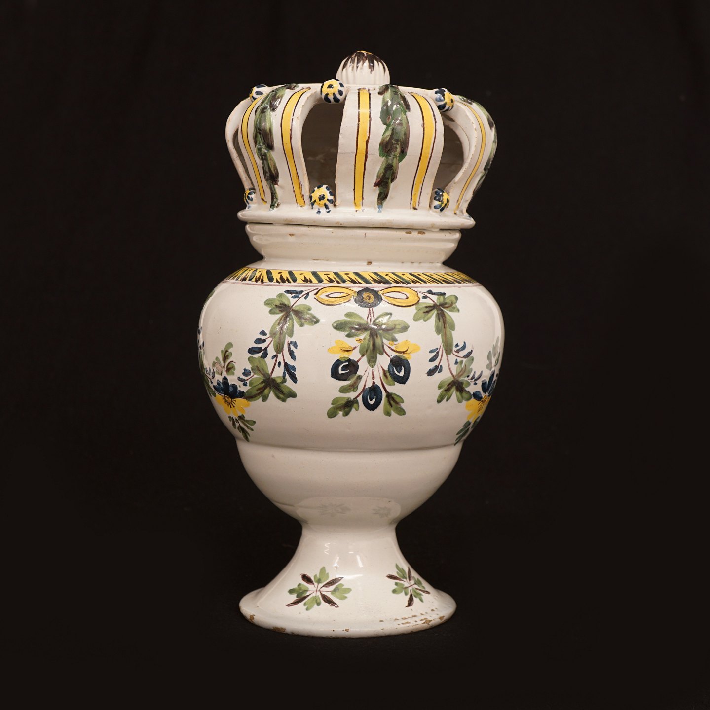 An end 18th century potpourri jar of faience. Kellinghusen, Northgermany, circa 1790. H: 27cm