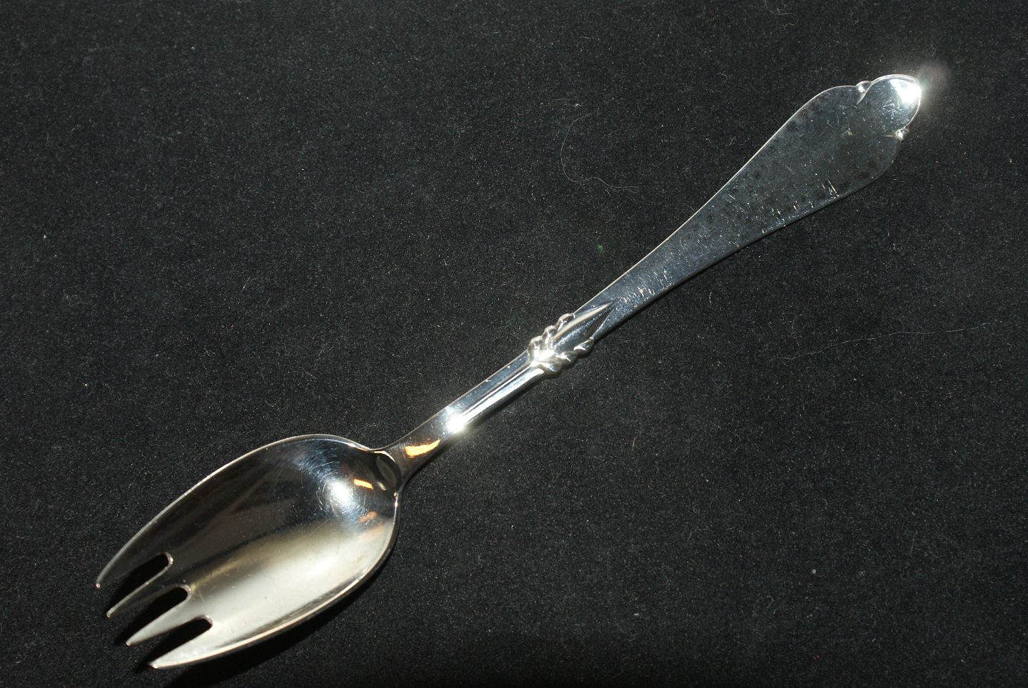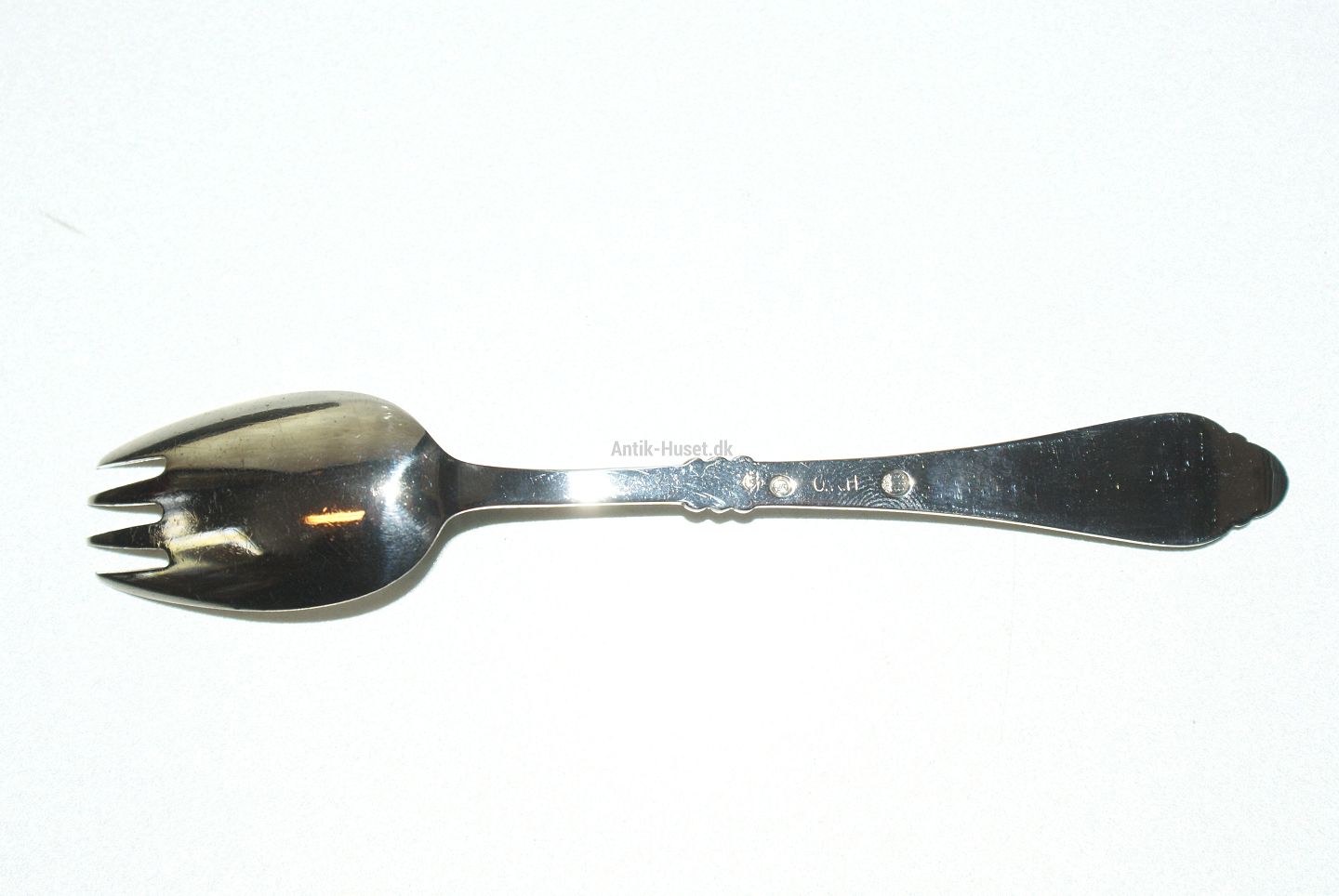 Kids Spoon fork Freja sølv Length 14 cm. Beautiful and well maintained The cutlery is polished and packed in a bag.