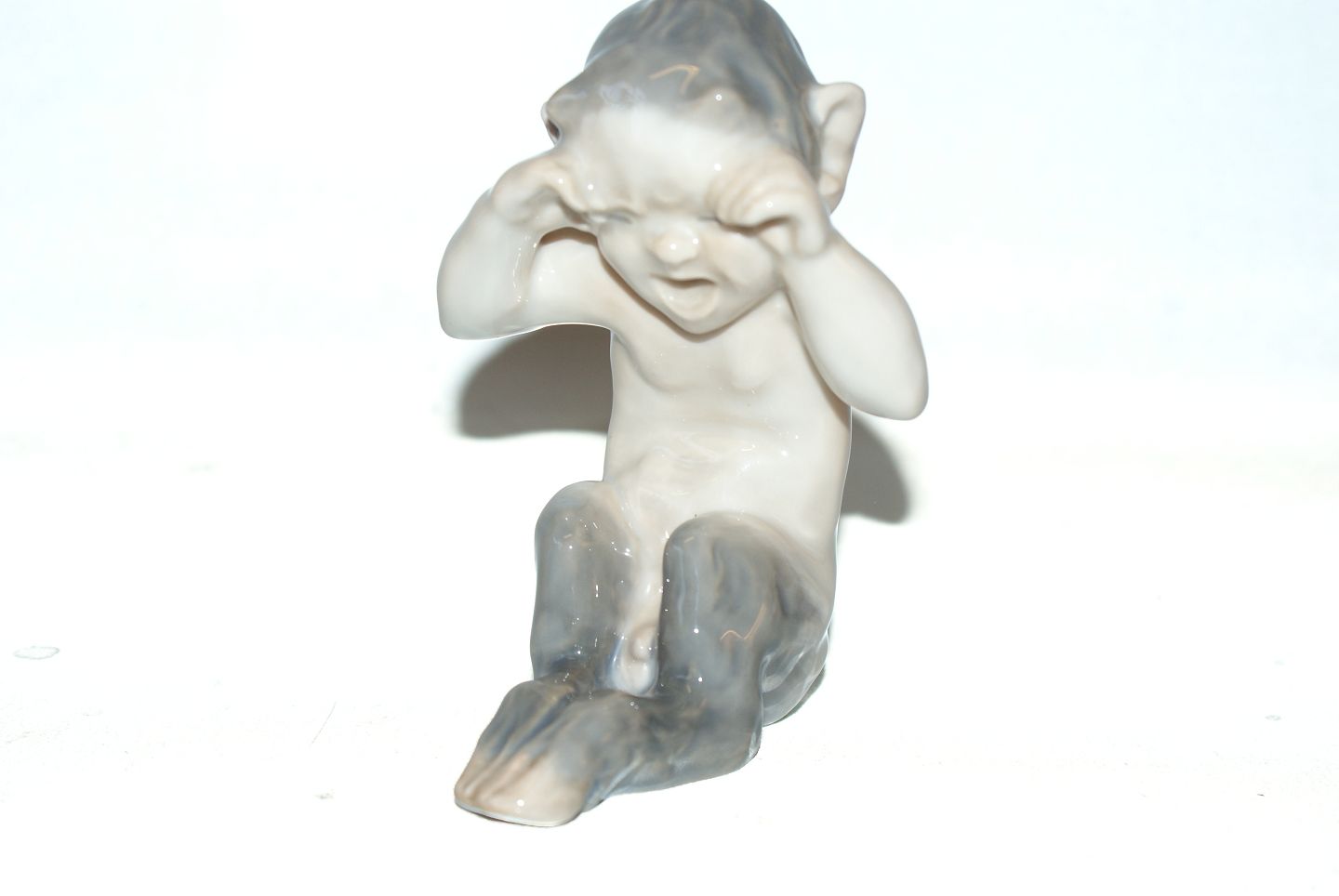 Royal Copenhagen figurine, Crying Faun / Pan Design: Knud Kyhn 1909 Dek. No. 1061 1st quality. Height 11 cm. Beautiful and well maintained