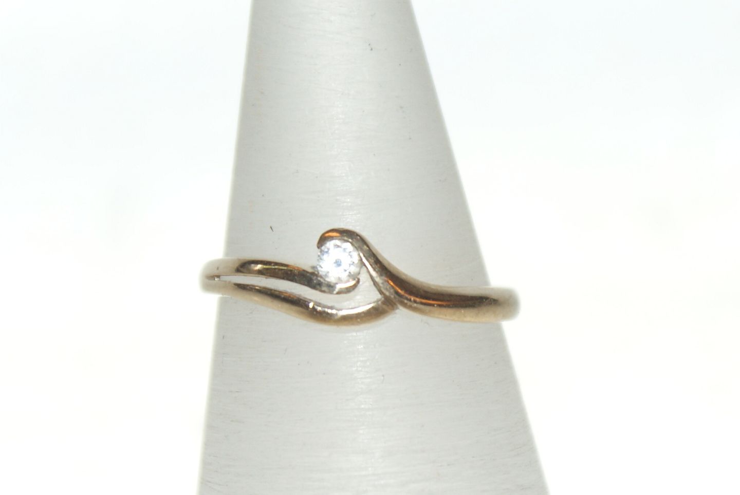 Elegant Guldring med hvid sten, 8 Karat Stemplet: 333, JAa Størrelse: 58 / 18,46 mm. Ingen eller næsten ingen brugs slidtage Varen findes ikke fysisk i forretningen Kontakt os for fremvisning