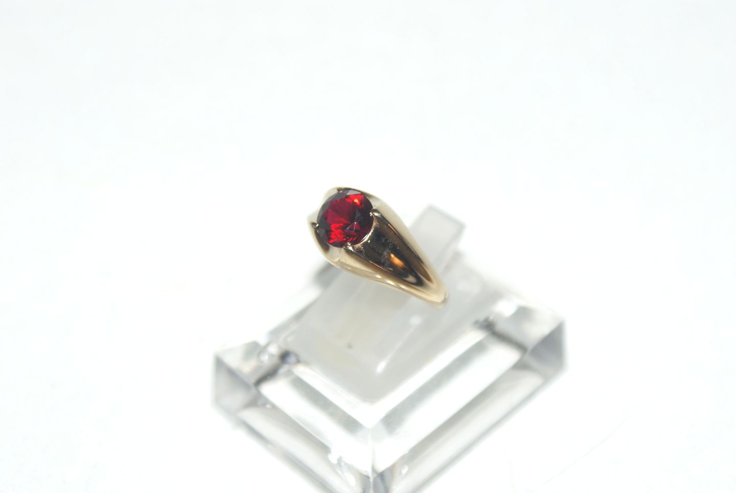 Gold ring ladies with red stone 14 carat gold Size 54 Nice and well maintained condition The item is not physically found in the store so call and make an appointment to see the item