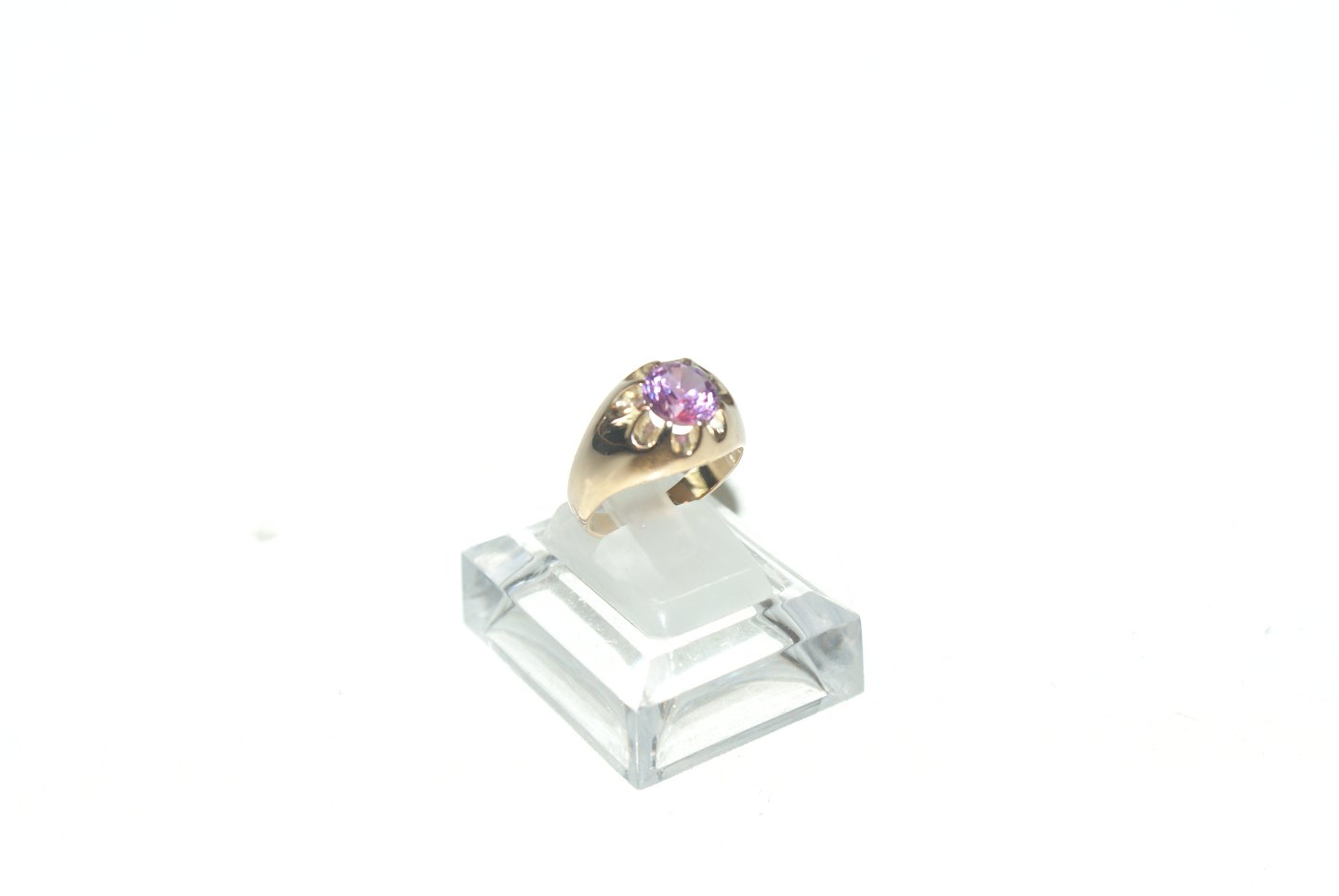 Elegant ladies ring in 14 carat gold with purple / pink stone Stamped 585 bra Size 57 Nice and Well Maintained. The item is not physically available in the store, contact us for viewing.