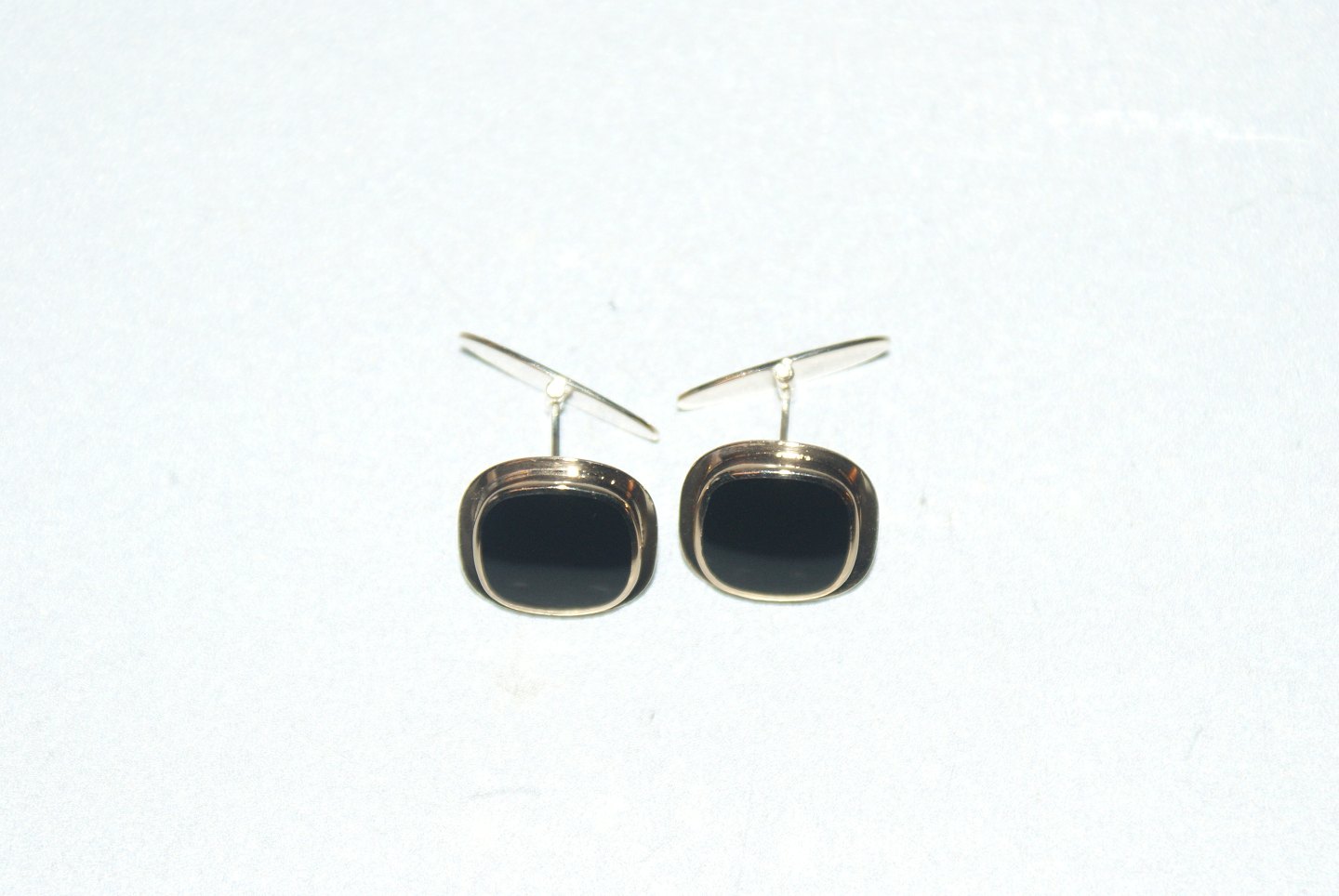 Cuffs with black onyx in 14 carat gold Stamped 585 HGr Height 14.68 mm Width 14.68 mm Checked by jeweler The item is not physically available in the store, so contact us for further info or demonstration.