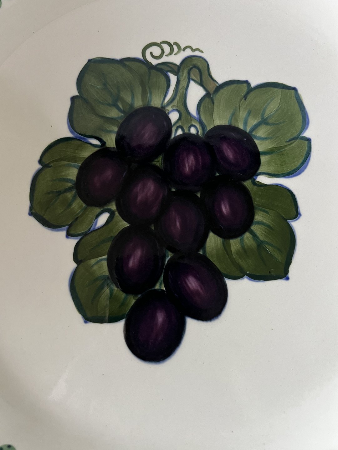 Platte #Aluminia med Drue klasse med lille skår Dekorationsnummer #899/#702 Diameter 34 cm. Pæn og velholdt stand og lille skår se billede