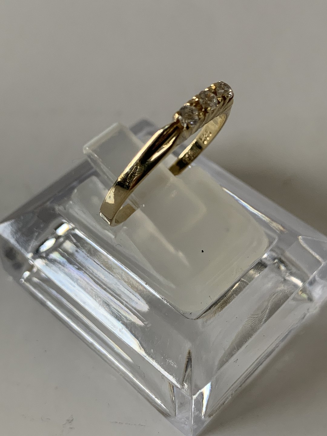 Beautiful gold ring with 3 clear stones in 14 carat gold. The gold ring has a nice structure that makes the ring very elegant to wear. The 3 clear stones give the ring a beautiful sparkling effect in the light. Wear the ring in combination with other rings, or alone - this ring can do both.