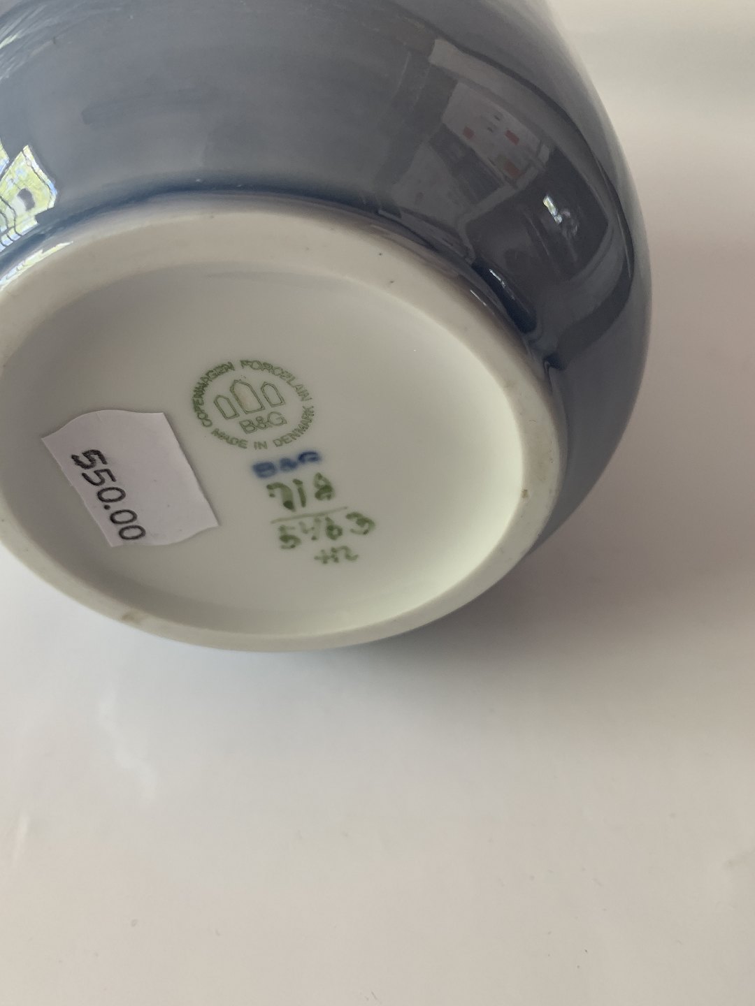 Bing & Grøndahl B&G, Vase dekoreret med grønlandsk issejlas. Dekorationsnummer 718/5463. 2. sortering. Højde 17,5 cm. Perfekt stand.