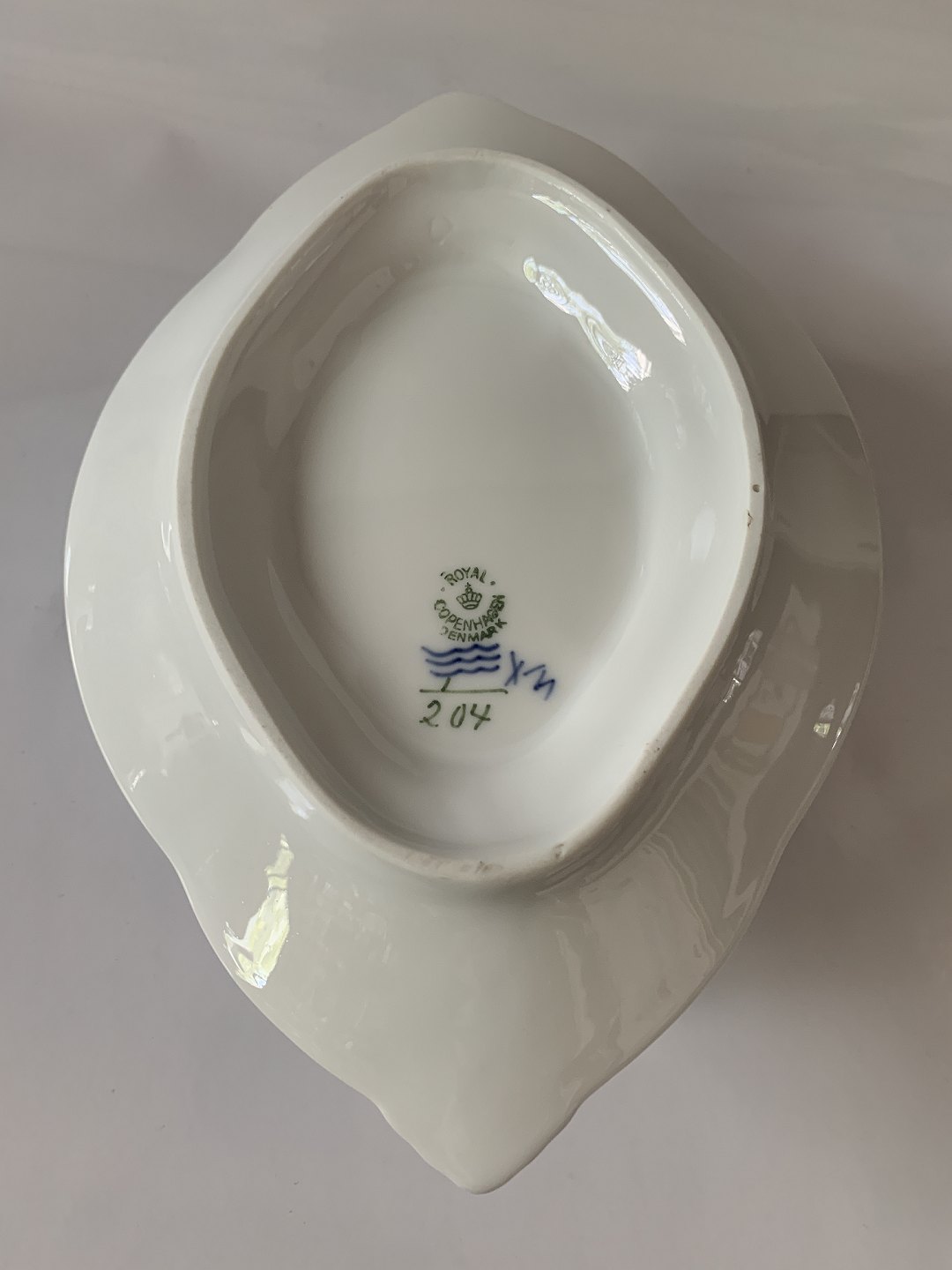 Royal Copenhagen Musselmalet Riflet, Sauce skål Dek. nr. 1/204 eller 1101 563 Længde 24 cm. Pæn stand.