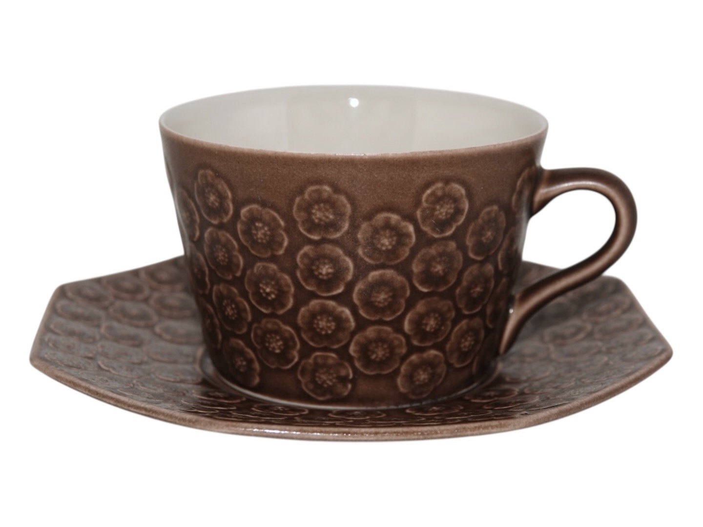 Kronjyden/Bing & Grondahl Umbra stoneware, cup with matching saucer. Designed by Jens Harald Quistgaard. The cup measures 8.8 cm. across. Perfect condition.
