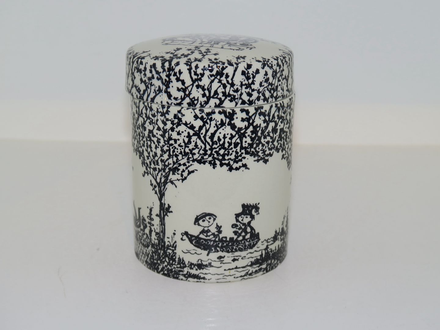 Nymølle keramik, Bjørn Wiinblad, krukke med låg. Dekorationsnummer 3043/681. Højde 10,0 cm. Perfekt stand.