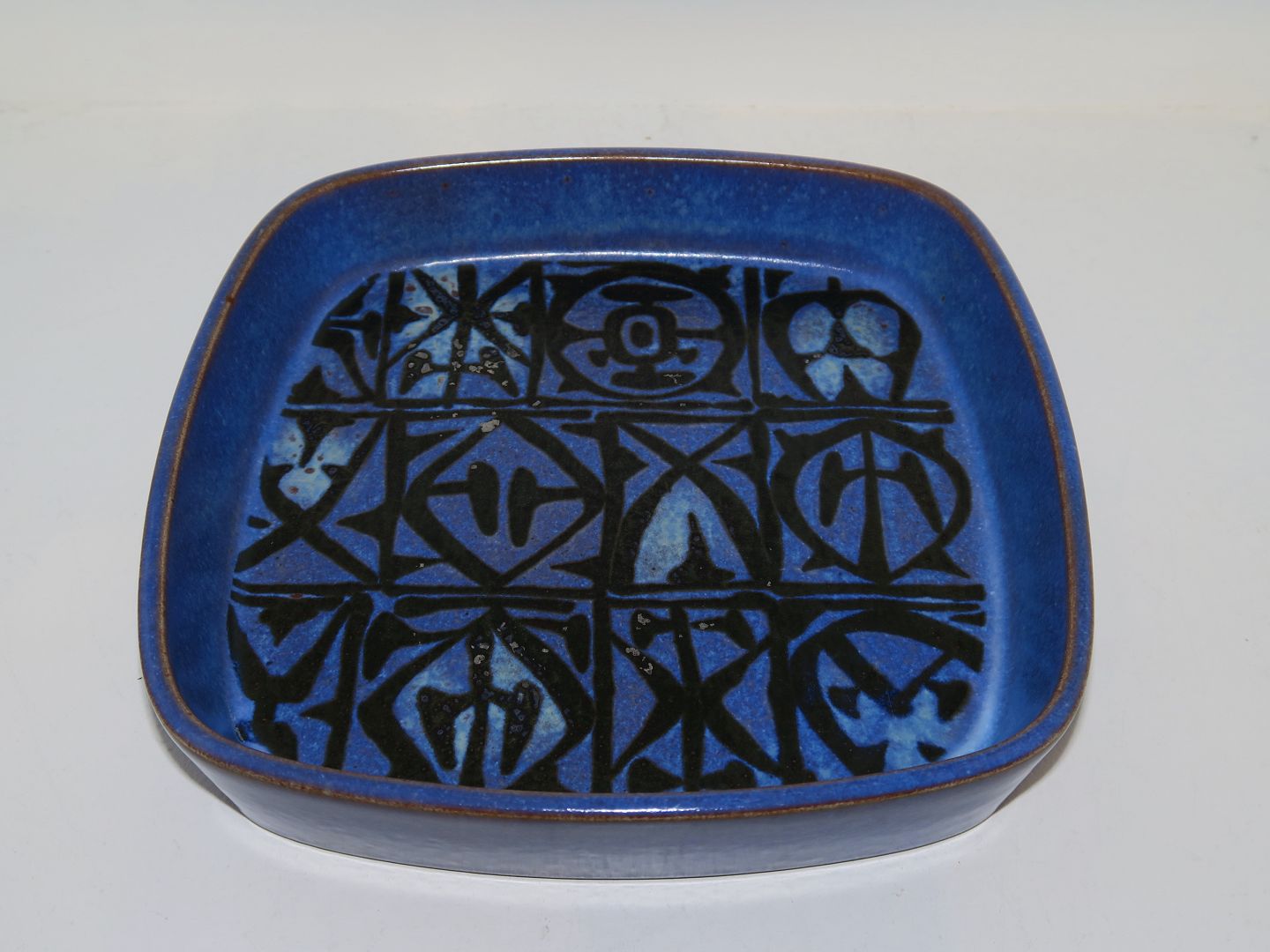 Aluminia - Royal Copenhagen Baca, blå firkantet skål.