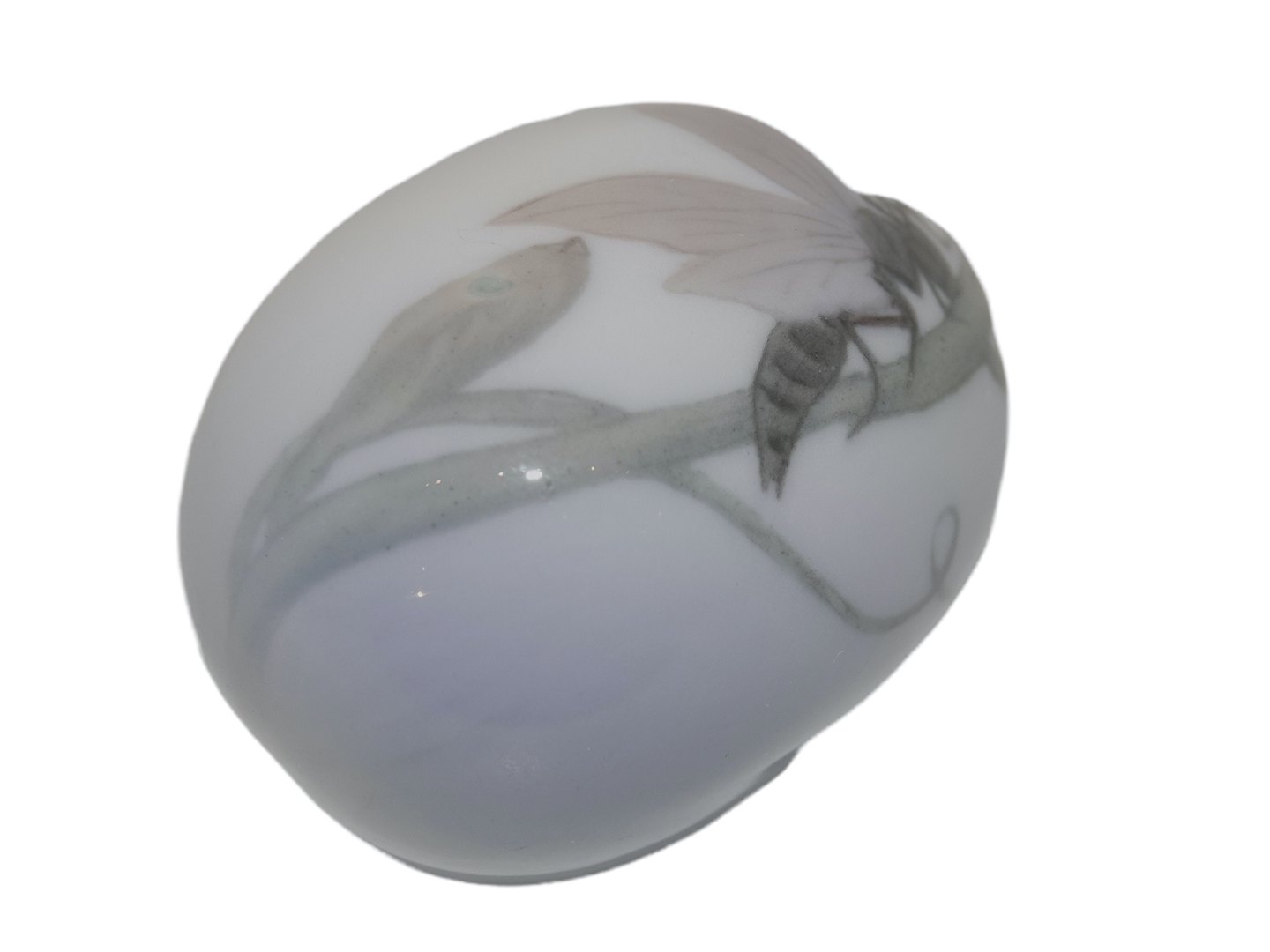 Royal Copenhagen Art Nouveau æg dekoreret med hveps. Af fabriksmærket ses det, at denne er produceret mellem 1898 og 1923. 1. sortering. Længde 5,5 cm. Perfekt stand uden fejl.