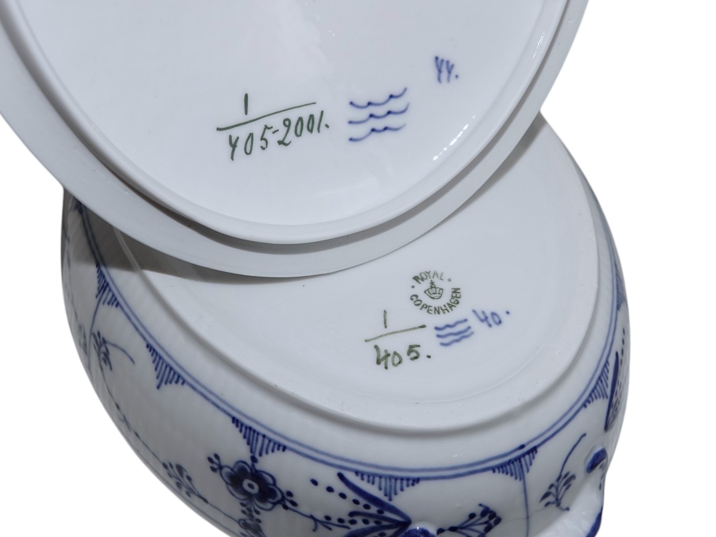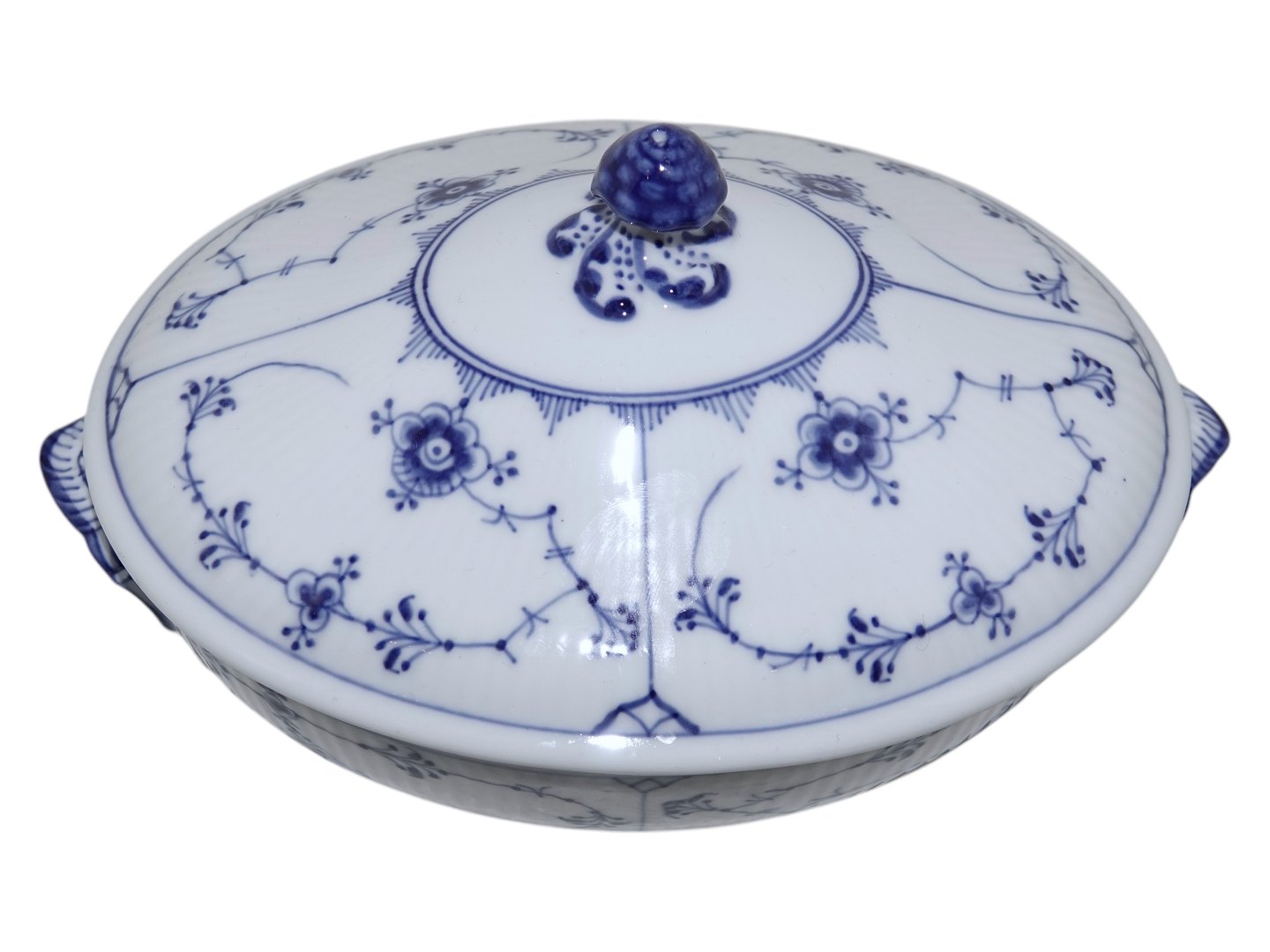Royal Copenhagen Musselmalet Riflet, sjælden lille skål med låg (lille terrin).