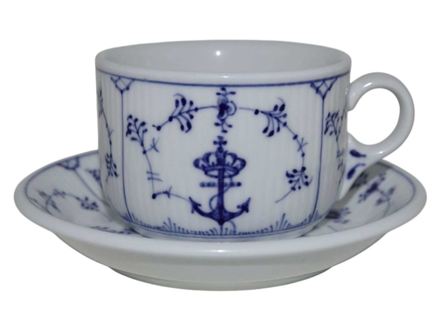 Royal Copenhagen Blue Fluted Plain Hotel porcelain, rare and large cup with logo fra the Danish Navy.