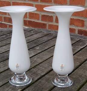 Holmegaard glaskunst. Vase/lysestage i mælkehvidt glas 18,5cm.