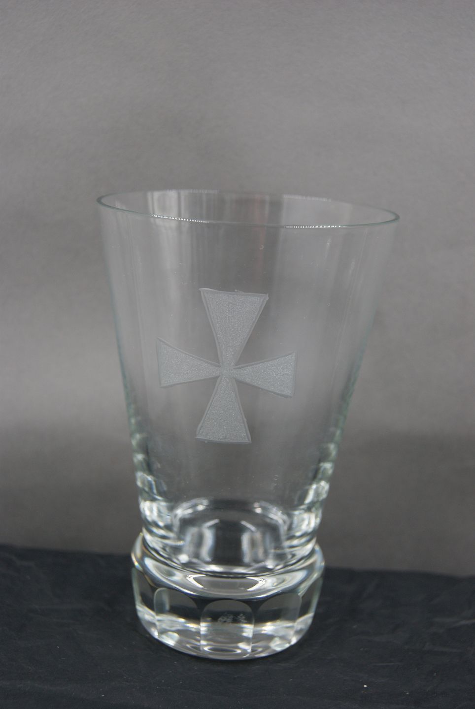 Frimurerglas, Ølglas dekoreret med slebne symboler, på kantsleben fod til Lodge Sankt Johannes