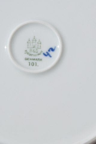 Sommerfugl med blondekant eller Dickens Bing & Grøndahl B&G porcelæn. Rundt fad med hanke eller kagefad nr. 101 i 2.sort. og i pæn, brugt stand.