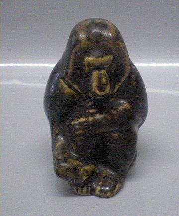 Keramik abe fra Michael Andersen 10 cm - Bavian Brun glasur I fin stand Mærket med de tre fisk i trekant