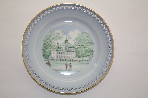 Danmarkstellet, Bing & Grøndahl. Kagetallerken med hulbort. Dekorationsnr. 616,5. Diameter 17 cm. Forskellige motiver: