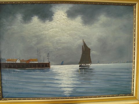 På blindramme med bly - Willy Bille - Mørk aften på Limfjorden.