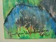 Gouache af Jørgen Wadmann 1962 - Dreng på stene ved solnedgang.