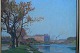 Maleri af Aage Lundgreen - Fabriksanlæg ved sø.