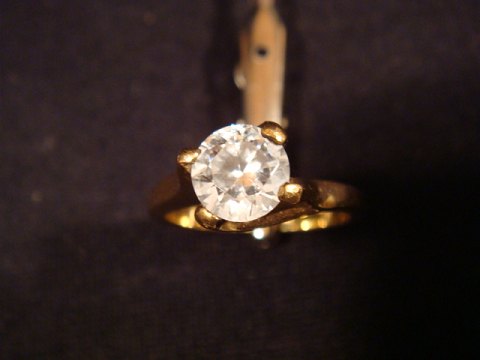 Ring guldbelagt med stor zirkon.