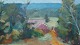 Maleri af Poul Bruun Jacobsen 1976 - Gård i landskab.