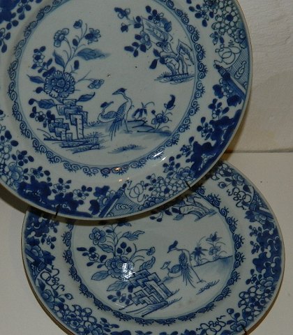 Chinese dishes with blue decorations decorated with heron. Made in the first half of 19th. century. In perfect condition. 22½ cm in diameter.