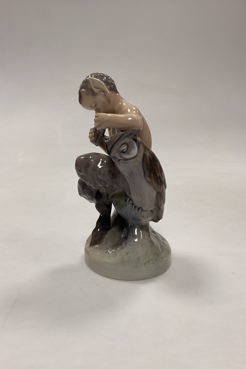 Royal Copenhagen Figur Faun med Ugle No. 2107. Designet af Chr. Thomsen i 1920.