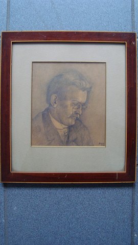 Text available in Danish: Tegning af billedhuggeren Joachim Becher Smith 1903 - Herreportræt.