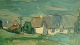Maleri af Arnold W. Pedersen - Klitlandskab med huse og får.