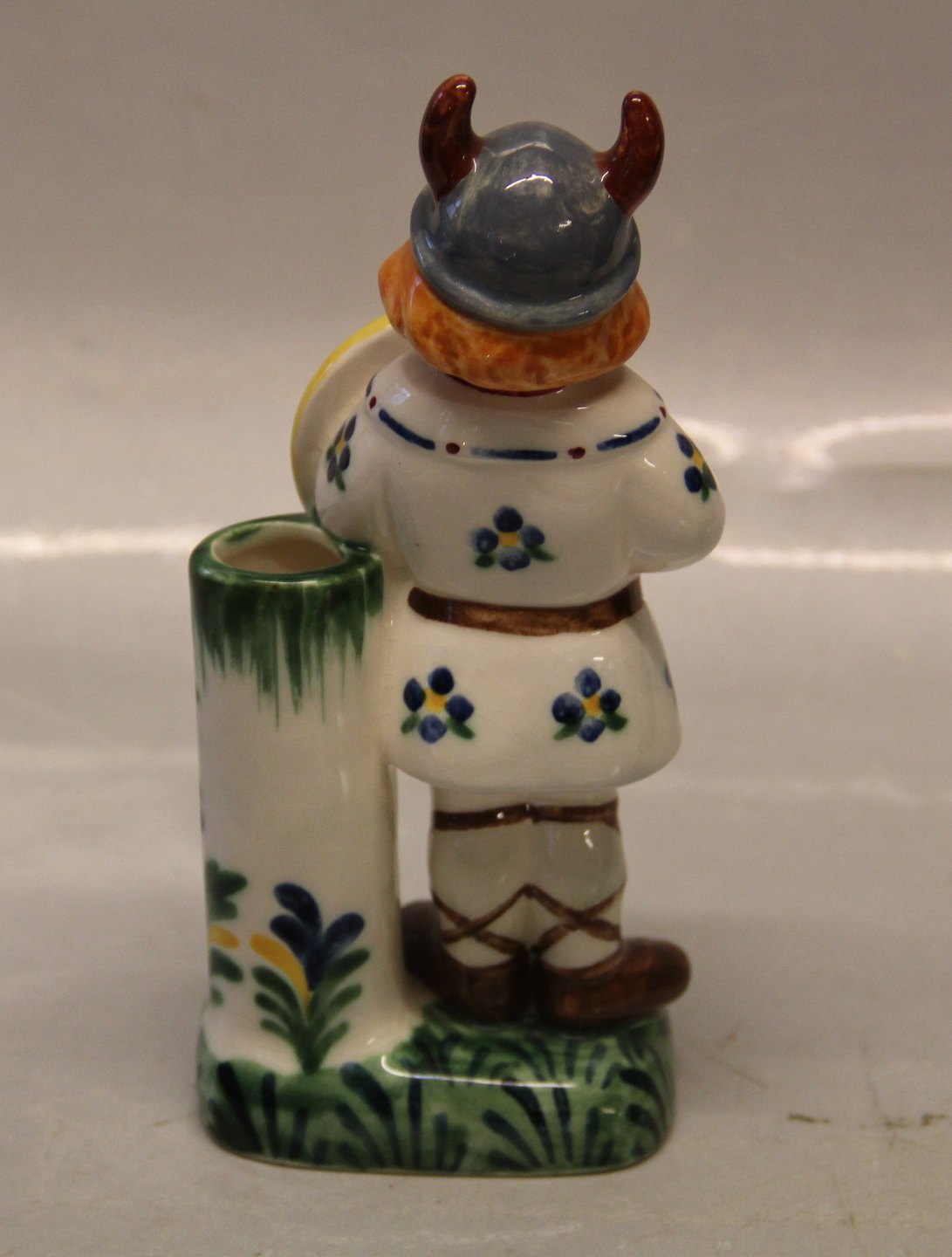 Aluminia fajance Børnehjælpsdagsfigurer 1963 Viking # 3230 Vikingen med skjold. Børnehjælpsfigurerne blev designet i skønvirke stil af Herluf Jensenius og formgivet af Hans Henrik Hansen (1941-1965) for at fejre børnehjælpsdagen. JUS