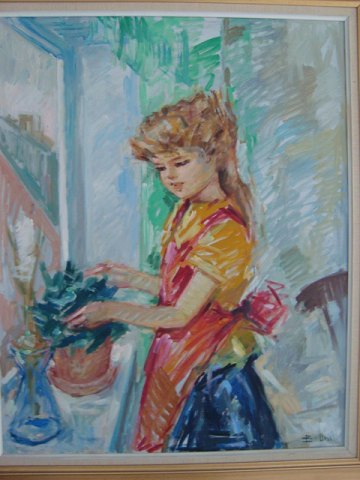 Maleri Bendt Lauridsen - Pige ved vindue.