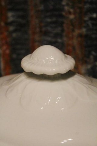 Gammel Fransk oval terrin med låg i hvidt porcelæn.