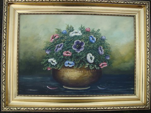 Maleri af E. Christensen - Franske anemoner i krukke.
