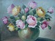 Maleri af Eva Fliegl - Gule og lyserøde roser i vase.