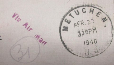 Letter. WW2. Air Mail letter. American Clipper. Letter sent from Nissen, 211 Maine Street, Metuchen, New Jersey, USA for Mr. Nielsen, Resenvej 12, Skive, Denmark. Stamped in Metuchen April 23, 1940, 3:30 PM. The letter is opened / geöffnet of Oberkommando der Wehrmacht, when arrived in Germany and tried / Geprüft / censored. Ribbons and stamped. Franked with 30 Cent. Stamps and label for air mail. The letter is sent to Denmark just before the German occupation of Denmark, April 9, 1940, but arrived in Europe after. Rare letter !!!
